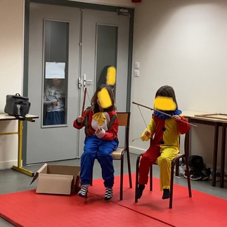 Après 2 demi journées à travailler sur les mimes et les situations burlesques, les apprentis acteurs ont présenté un petit spectacle à leurs proches.
